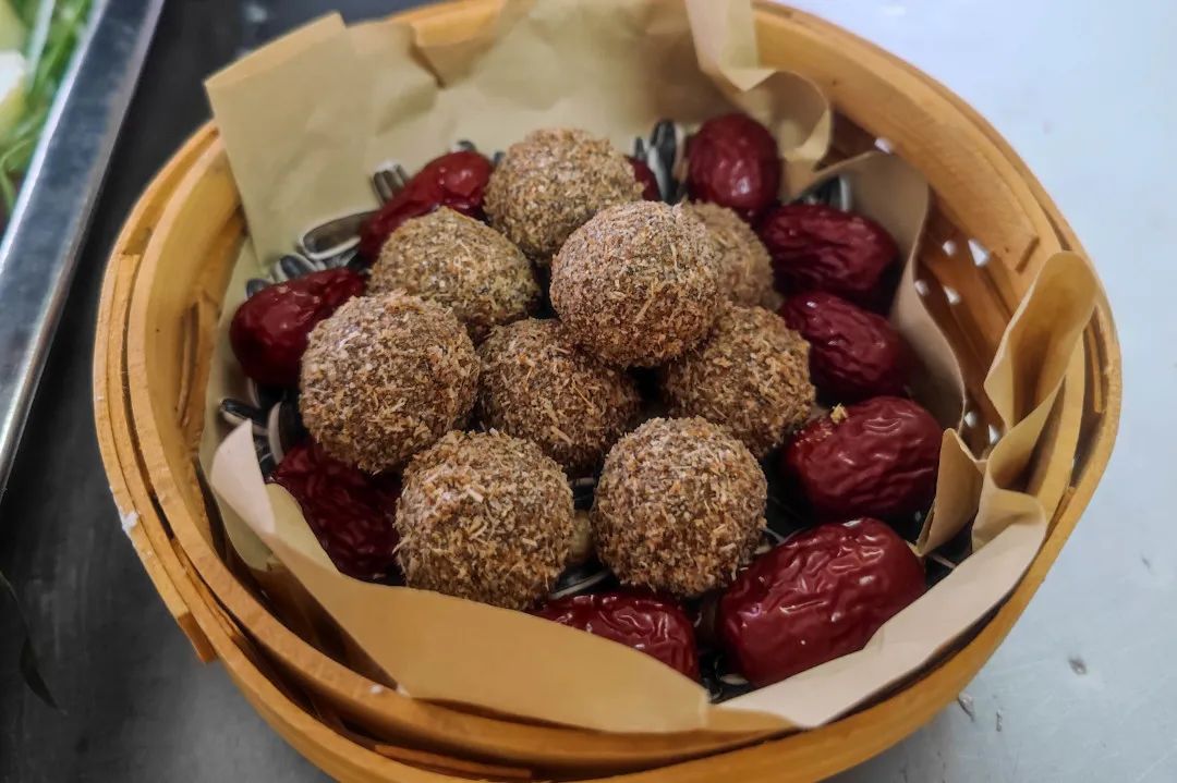 将坚果元宵摆在果盘里,