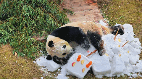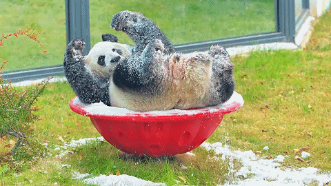 想看“渝宝”和“加悦悦”玩雪吗?