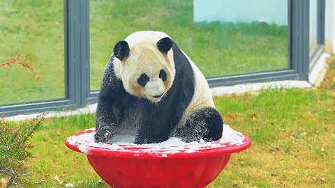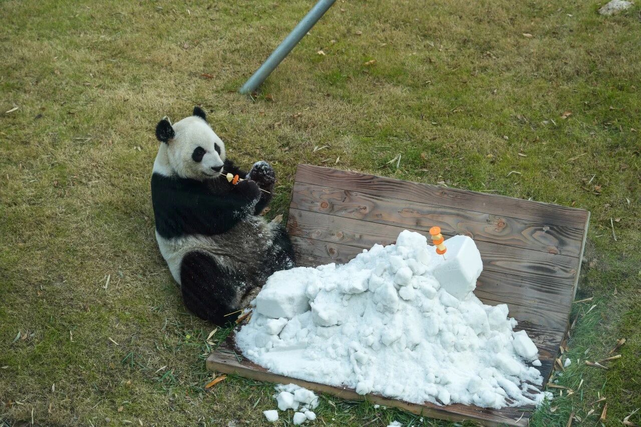 无锡动物园的熊猫馆里却提前飘起了“雪”!