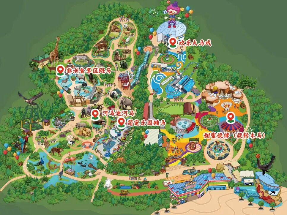 如熊猫、老虎、长颈鹿、斑马、马、河马等)